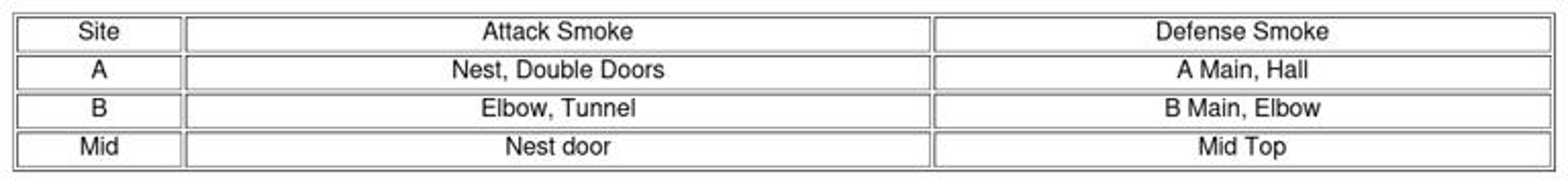 Pour le site B, il faut privilégier les fumigènes sur le coude et à l'arrière du site pour limiter la visibilité des défenseurs.