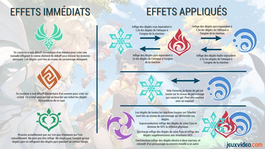 Pour les joueurs souhaitant maîtriser rapidement ces concepts, il est conseillé de télécharger ou de sauvegarder cette ressource. Elle offre un aperçu visuel des principaux effets, des combinaisons possibles, ainsi que du mode de calcul des dégâts résultant des interactions élémentaires. Une référence incontournable pour optimiser ses équipes et maximiser ses performances dans Genshin Impact.