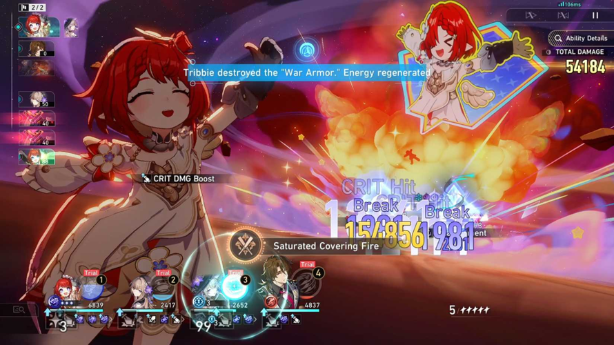 To unlock the second achievement, players should engage in prolonged battles that include multiple enemy waves. The goal is to activate Tribbie's talent 10 times in a single combat encounter, which results in her unleashing a follow-up attack on all foes after other allies use their ultimates. Each ally can trigger this effect once per battle, and the count resets whenever Tribbie uses her ultimate, making extended fights with strategic ally ultimates essential.